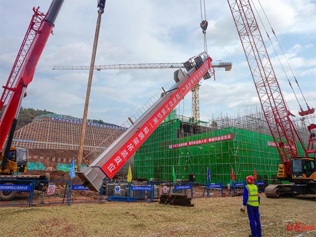 萬興環(huán)保發(fā)電廠三期項(xiàng)目焚燒爐第一榀鋼架吊裝