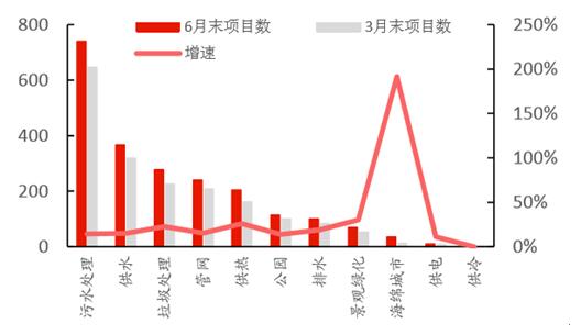 截止2016年6月和3月的環(huán)保PPP入庫項(xiàng)目數(shù)