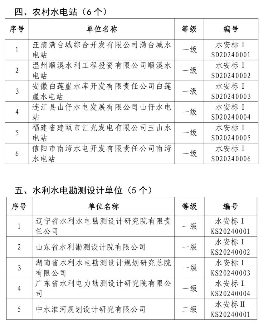 中新網(wǎng)1月22日電 據(jù)中國水利官方微信消息,根據(jù)《水利部關(guān)于印發(fā)〈水利安全生產(chǎn)標準化評審管理暫行辦法〉的通知》《水利部關(guān)于印發(fā)農(nóng)村水電站安全生產(chǎn)標準化達標評級實施辦法(暫行)的通知》《水利部辦公廳關(guān)于印發(fā)〈水利安全生產(chǎn)標準化評審管理暫行辦法實施細則〉的通知》《水利部關(guān)于水利部安全生產(chǎn)標準化評審有關(guān)事項的通知》和《水利部辦公廳關(guān)于水利水電勘測設(shè)計等四類單位安全生產(chǎn)標準化有關(guān)工作的通知》,經(jīng)評審,遼寧省葠窩水庫管理局有限責任公司等57個單位為安全生產(chǎn)標準化一級單位、中水淮河規(guī)劃設(shè)計研究有限公司等2個單位為安全生產(chǎn)標準化二級單位,名單如下。