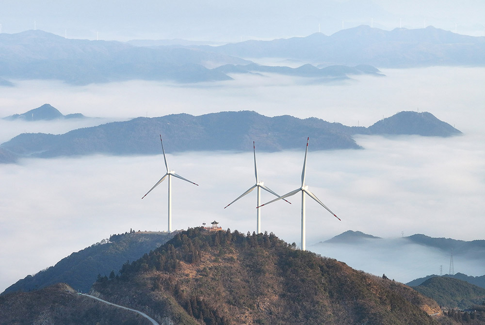 2025年3月1日,浙江省臺州市三門縣湫水山風力發(fā)電場,風力發(fā)電機迎風旋轉(zhuǎn),產(chǎn)生源源不斷的綠色電能。近年來,三門縣堅持綠色發(fā)展理念,發(fā)展高山風能綠色能源產(chǎn)業(yè),助力低碳減排,實現(xiàn)生態(tài)環(huán)境持續(xù)發(fā)展。