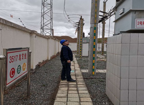中國電力網(wǎng)訊 5月6日下午,國網(wǎng)甘肅肅南縣供電公司變電運檢班班長王攀剛正一瘸一拐忍著疼痛對轄區(qū)內(nèi)35kV皂礬溝變電站進行細致全面的檢查。