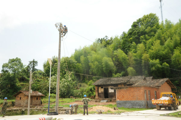 國網(wǎng)撫州廣昌縣供電公司赤水供電所工作人員劉方廣、劉方明、饒建平等人在接到楊溪鄉(xiāng)江背村用戶反映多戶無電的情況后,立即趕赴現(xiàn)場查找故障原因。直至5月16日凌晨3時左右,該供電所工作人員巡視完故障線路統(tǒng)計出結果:本次強風共造成10千伏楊溪線江背支線88號至89號桿斷線,10千伏楊溪線江背支線江背臺區(qū)0.4千伏江背1號線18號、19號桿倒桿斷線,同時,吹散表箱3只,下戶電纜3處。