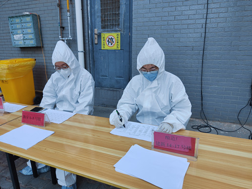 8月7日,五點(diǎn)鐘天還未亮,志愿者們便來到包聯(lián)的建新佳苑社區(qū)開始布置核酸檢測(cè)現(xiàn)場(chǎng)。“穿好防護(hù)服后,各自就位,準(zhǔn)備開始核酸檢測(cè)。”大家紛紛穿好防護(hù)服各就各位。“請(qǐng)大家提前出示健康碼,保持一米距離,佩戴好口罩,做好個(gè)人防護(hù)”負(fù)責(zé)維護(hù)秩序的賈生耀在隊(duì)首和隊(duì)尾之間來回走動(dòng)嘴里一直喊著大家排好隊(duì)做好防護(hù);另一邊,李正陽在核酸檢測(cè)“核心”環(huán)節(jié)之一的崗位上,為檢測(cè)人員掃碼并確認(rèn)其信息是否正確。全副武裝的他表示:這工作看似很簡單沒有什么技術(shù)含量,但其實(shí)更多的是需要細(xì)心,要“人碼”一致,還要盯住做到“十人一組”。“大爺,您是本小區(qū)的嗎?住在幾棟幾單元?”在做完核酸登記信息的區(qū)域中,一個(gè)小小的白色身影被數(shù)列隊(duì)伍淹沒,只能聽見她高八度的聲音在不停詢問著每一個(gè)登記的人員,她就是配電帶電作業(yè)處里唯一的一名姑娘——劉佳敏。別看她是個(gè)女孩子,卻是“中氣十足”,建新佳苑大多數(shù)都是老人,歲數(shù)大一點(diǎn)的一些老人耳朵不太靈敏,聲音小了就聽不見在說什么,于是她耐心地一遍又一遍大聲詢問著,直到信息統(tǒng)計(jì)結(jié)束。當(dāng)天雖然下了一陣雨,可是溫度卻并沒有降下來,幾個(gè)人穿著防護(hù)服仿佛在“蒸桑拿”一般,里面的衣服已經(jīng)完全浸濕,他們開玩笑著說:“這可一點(diǎn)都不遜色于穿絕緣服工作,不管黃衣服還是白衣服,注定是要‘濕身’。”