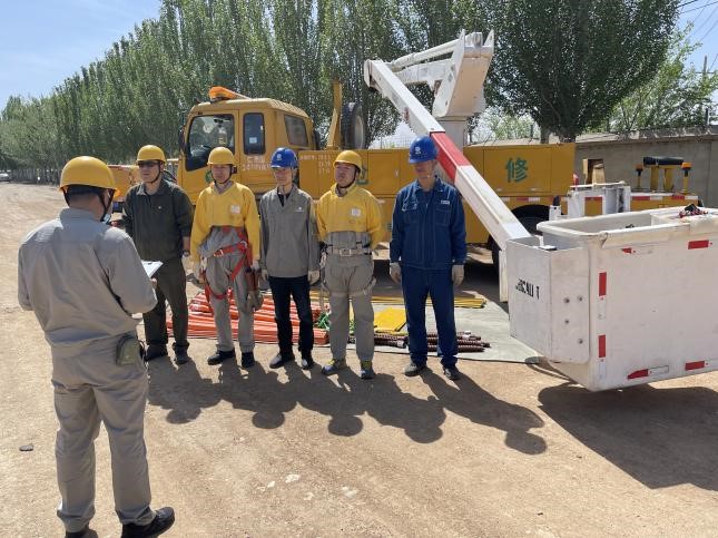到達現(xiàn)場后,隨著負責人召開班前會交代完現(xiàn)場的危險點及預控措施后,只見“全副武裝”的帶電作業(yè)人員熟練地操作著絕緣斗臂車,嚴格按帶電作業(yè)規(guī)程進行著導線絕緣遮蔽。線路下方,現(xiàn)場負責人、專責監(jiān)護人均聚精會神地做好指導工作、監(jiān)護工作。