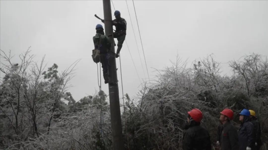 “因下凍雨的原因,這個(gè)變電桿覆冰好厲害,現(xiàn)在要把這個(gè)電桿冰除掉,才能夠上桿作業(yè),我們就采取土辦法,用刀刮,因?yàn)橐巴馍涣嘶?,沒有其他設(shè)備,把這個(gè)冰刮了以后,再進(jìn)行人工作業(yè),電桿打滑打得好厲害。”國(guó)網(wǎng)鄱陽(yáng)縣供電公司游城供電所負(fù)責(zé)人謝雪兵說(shuō)道。