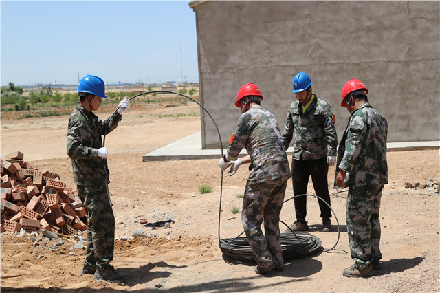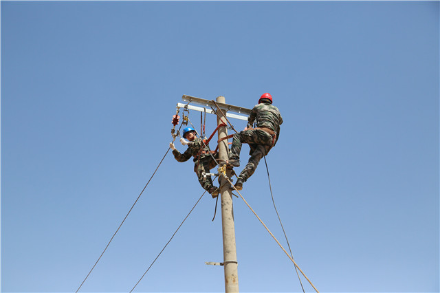 施工當天烏海地區(qū)高溫來襲,施工難度陡增,六五四供電分局黨員突擊隊成員在三十五攝氏度的高溫下,頭頂烈日、腳踏電桿。按照分工干脆利落的進行立桿、安裝橫擔、緊線等工作。經(jīng)過3個小時的作業(yè),終于順利地為此貧困戶送上電。貧困戶張占飛的母親非常激動。“原先以為只是簡單修一下,沒想到還需要這么多步驟,他們做得這么細致、這么認真,真的是非常感謝他們。”
