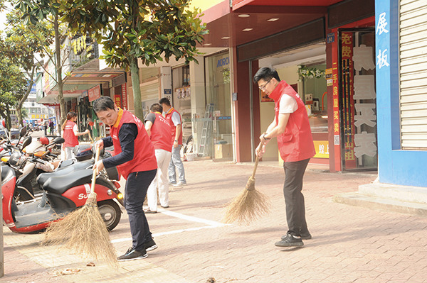 并響應(yīng)政府號召開展社區(qū)環(huán)境整潔行動,該公司黨員服務(wù)隊(duì)組織10名成員對社區(qū)環(huán)境、街道清潔獻(xiàn)出一份力。對營業(yè)廳門口的解放北路與公司附近小區(qū)進(jìn)行清掃,不遺漏一個(gè)煙頭,一片紙屑,做到“不遺漏任何一個(gè)死角”,致力將環(huán)境衛(wèi)生優(yōu)化到位。
