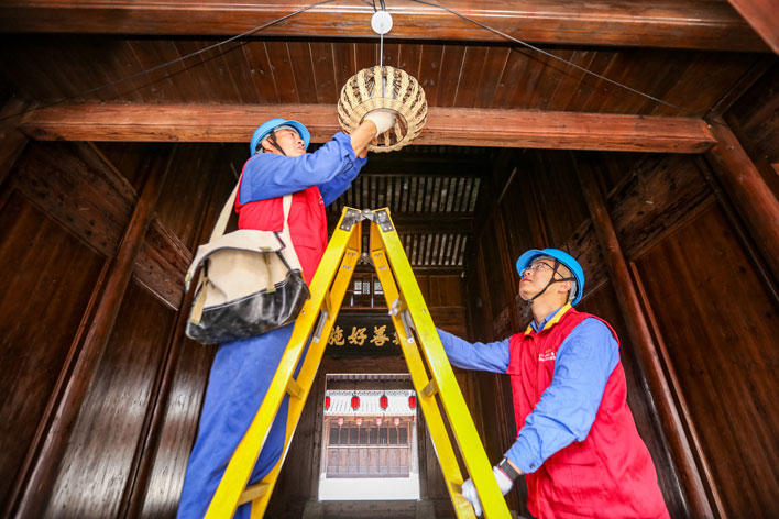 隨著秋冬季干燥氣候的到來,考慮到走馬樓的特殊木質(zhì)結(jié)構(gòu),國家電網(wǎng)浙江電力(鄞州)紅船共產(chǎn)黨員服務(wù)隊特意來到走馬樓,為該處做了一次綜合性的“體檢”工作。服務(wù)隊員重點對走馬樓的墻頭線、計量裝置進(jìn)線以及計量裝置表后線進(jìn)行了一一檢查,排查線路短路、絕緣老化和設(shè)備故障等運行隱患,針對照明設(shè)備損壞的情況,服務(wù)隊員利用自身技術(shù)技能,現(xiàn)場更換受損設(shè)備,共為走馬樓更換燈泡20盞,修復(fù)燈座15個。此外,供電人員還來到走馬樓另一側(cè)的居住區(qū),為其中居住的居民更換老舊表箱,消除居民日常生活中的用電隱患。為了保障走馬樓的日常用電安全,服務(wù)隊員還向管理人員進(jìn)行了安全用電知識的科普宣傳,叮囑管理人員注意木質(zhì)結(jié)構(gòu)房屋的用電安全,謹(jǐn)慎使用大功率電器,以免發(fā)生火災(zāi)。