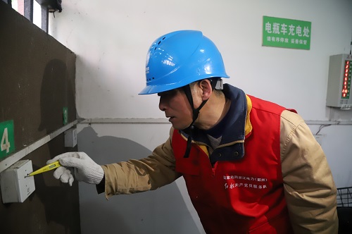 中國電力網(wǎng)訊 11月26日,國家電網(wǎng)浙江電力(鄞州)紅船共產(chǎn)黨員服務隊隊員來到位于鄞州區(qū)中河街道的峰景苑小區(qū)進行電動自行車充電樁線路安全巡查。