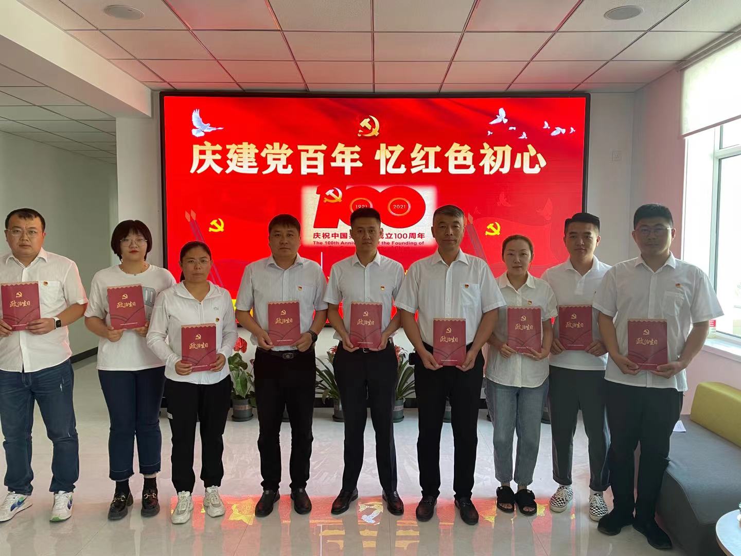 隨后,支部副書記向所有黨員贈送了政治生日賀卡,并合影留念。這對黨員是一種激勵,更是一種鞭策,必將時刻提醒黨員牢記黨的宗旨,不忘初心。