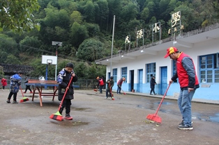 觀影結束后,隊員們帶領孩子們開展義務清潔鄉(xiāng)村環(huán)境活動,大家清掃了校園衛(wèi)生后,紛紛沿著村內主要干道、巷道開始清理垃圾,通過一個小時的努力,將道路上的煙頭、塑料袋、枝葉等垃圾全部清掃干凈,整個鄉(xiāng)村煥然一新。