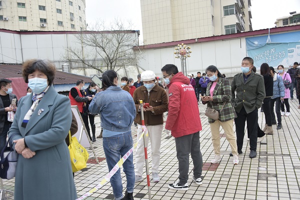 26日采樣當(dāng)天,該公司工作人員分為兩隊(duì),其中一隊(duì)40余人分為4組,在中興小區(qū)開(kāi)展“敲門(mén)行動(dòng)”,挨家挨戶上門(mén)登記核對(duì)人員名冊(cè),對(duì)于不會(huì)使用手機(jī)的人員則進(jìn)行一對(duì)一指導(dǎo),幫助他們快速進(jìn)行預(yù)約登記,并將不便出門(mén)人員一一登記造冊(cè),全面掃描、不漏盲區(qū)。另一隊(duì)20余人則留在采樣現(xiàn)場(chǎng),測(cè)溫、引導(dǎo)、信息登記、分發(fā)物資、環(huán)境消殺,各司其職,采樣現(xiàn)場(chǎng)秩序井然。對(duì)于不便出門(mén)的特殊人員,志愿者帶領(lǐng)醫(yī)護(hù)人員進(jìn)行上門(mén)采樣檢測(cè),確保責(zé)任小區(qū)471戶應(yīng)檢盡檢、不漏一戶、不漏一人。采樣結(jié)束后,志愿者還對(duì)采樣點(diǎn)全場(chǎng)地進(jìn)行消殺。