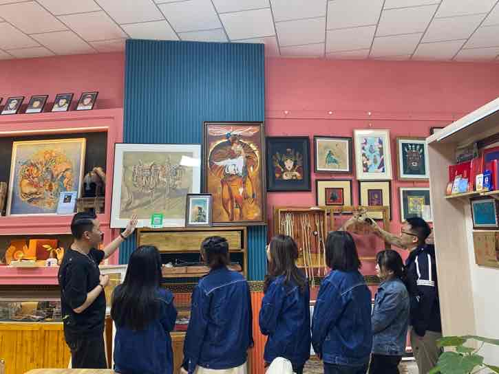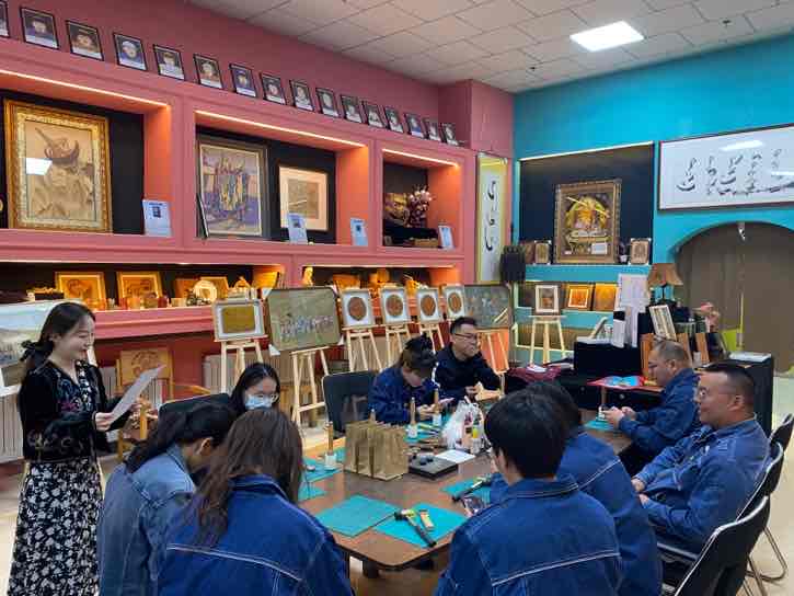 本次活動(dòng)內(nèi)容豐富,黨員干部職工積極前往阿拉善盟非物質(zhì)文化遺產(chǎn)皮雕藝術(shù)傳承研究展示中心參觀并體驗(yàn)非遺文化皮雕技藝。首先,由阿拉善盟非物質(zhì)文化遺產(chǎn)傳承人“皮雕匠人”張浩老師向大家介紹皮雕技藝在阿拉善地區(qū)傳承發(fā)展的歷史以及在展的各種皮雕藝術(shù)品,并現(xiàn)場(chǎng)演示了皮雕制作的基本技法,緊接著帶領(lǐng)大家制作傳統(tǒng)皮質(zhì)鑰匙包。職工們熱情高漲,紛紛動(dòng)手操作,開料、刻線、描摹、染色、縫線,皮面和針線來回穿插,充分體驗(yàn)到了非遺的魅力和手作的樂趣,最后在緊張刺激的民族團(tuán)結(jié)知識(shí)問答題中結(jié)束了本次活動(dòng)。