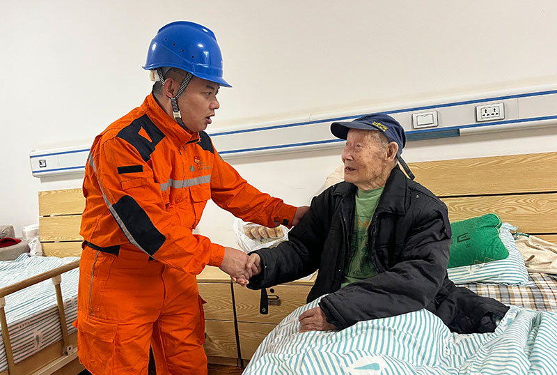 10月11日重陽節(jié),國網(wǎng)四川電力(資陽安岳)連心橋共產(chǎn)黨員服務(wù)隊(duì)前往安岳縣馨福老年康養(yǎng)中心,看望慰問蔣有廷、蔣倫兩位百歲抗戰(zhàn)老兵,向他們致以親切的節(jié)日問候和崇高的敬意。
