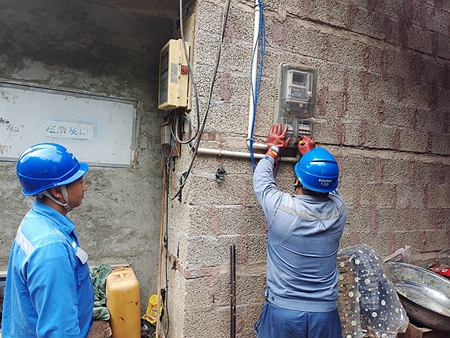 08月24日接到煙農(nóng)瞿世昌電話說他家武偉地墨武烤房用電不正常,由于接連幾日的大雨,導(dǎo)致山倒土塌因此車輛未能到達(dá)工作現(xiàn)場。詩禮供電所工作的光明使者趙瑞玨(工作負(fù)責(zé)人),帶領(lǐng)工作班成員(楊瑤、李金林)一同扛起所需安全工器具及個人安全防護(hù)用品徒步前行對瞿世昌戶用電排查,人們常說:安全是條繩,牽著千萬人,安全是根線,連著親人的掛念,故障處理后,瞿世昌拉著供電所員工的手非常感激,是供電所人員的及時到來,確保了他家的烤煙用電。