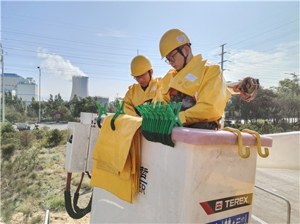中國電力網(wǎng)訊 9月30日,在順達(dá)站10千伏三金公司9105線利康分支12號桿下,烏海電業(yè)局配電帶電作業(yè)中心的作業(yè)人員操作絕緣斗臂車橙黃色的作業(yè)斗緩緩升起,“注意做好絕緣遮蔽,保持與鄰相高壓帶電導(dǎo)線的距離。”絕緣斗臂車底下,工作負(fù)責(zé)人楊澤函全神貫注地注視著絕緣斗內(nèi)。