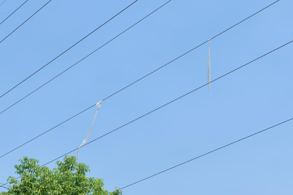 中國電力網(wǎng)訊 8月14日下午,國網(wǎng)余姚市供電公司公司輸配電運(yùn)檢中心員工巡視線路時(shí)發(fā)現(xiàn),在陸埠鎮(zhèn)工業(yè)園區(qū)35千伏洲車3825線23至24號塔之間的線路上有兩股異物纏繞,一旦連接兩根導(dǎo)線,極易引發(fā)線路跳閘,危及電網(wǎng)安全穩(wěn)定運(yùn)行。