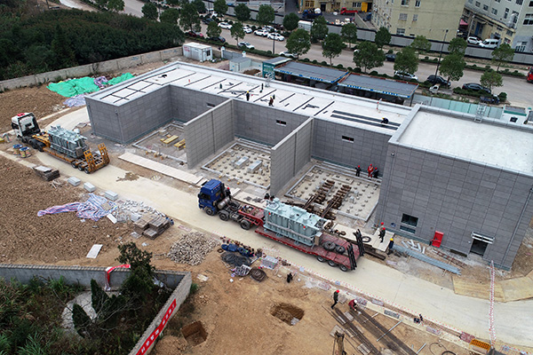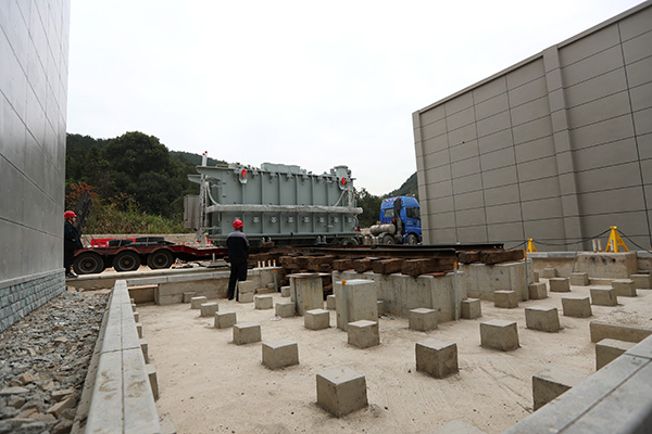 考慮到近期受山東青島疫情影響,國網(wǎng)寧海縣供電公司對來自山東菏澤地區(qū)的運輸單位人員提前進行了移動軌跡審查備案,并在工地現(xiàn)場開展測溫消毒,為冬季疫情防控做足了充分準(zhǔn)備。在各參建單位的周密部署下,經(jīng)過兩天復(fù)雜的步驟和精細的操作,兩臺主變順利卸裝就位,主變就位精準(zhǔn)、成品保護及現(xiàn)場環(huán)境滿足相關(guān)規(guī)范要求。