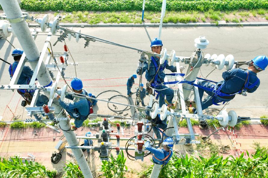 入夏以來,持續(xù)的高溫天氣讓電網(wǎng)負(fù)荷面臨極大“烤”驗。國網(wǎng)滑縣供電公司加快推進(jìn)電網(wǎng)升級補(bǔ)強(qiáng)、安全隱患治理等工作,切實提升電網(wǎng)運(yùn)行質(zhì)量和供電可靠性,為廣大用戶清涼度夏提供充足電力保障。當(dāng)天,在10千伏留賈線新建工程現(xiàn)場,作業(yè)人員穿戴好全套安全防護(hù)用具,動作熟練地爬上電桿,嚴(yán)格按照操作標(biāo)準(zhǔn)逐項完成接開關(guān)引流線、安裝真空開關(guān)等一系列操作。天氣炎熱加上施工作業(yè),工作人員的臉上很快就冒出了豆大的汗珠,他們顧不得擦去,只專注于手中的操作。他們從早上6:30分開始,經(jīng)過6個多小時的揮汗奮戰(zhàn),12:25分,10千伏留賈線路運(yùn)成功,為附近村民生產(chǎn)生活用電提供堅強(qiáng)電力能源保障,確保“清涼”度夏。