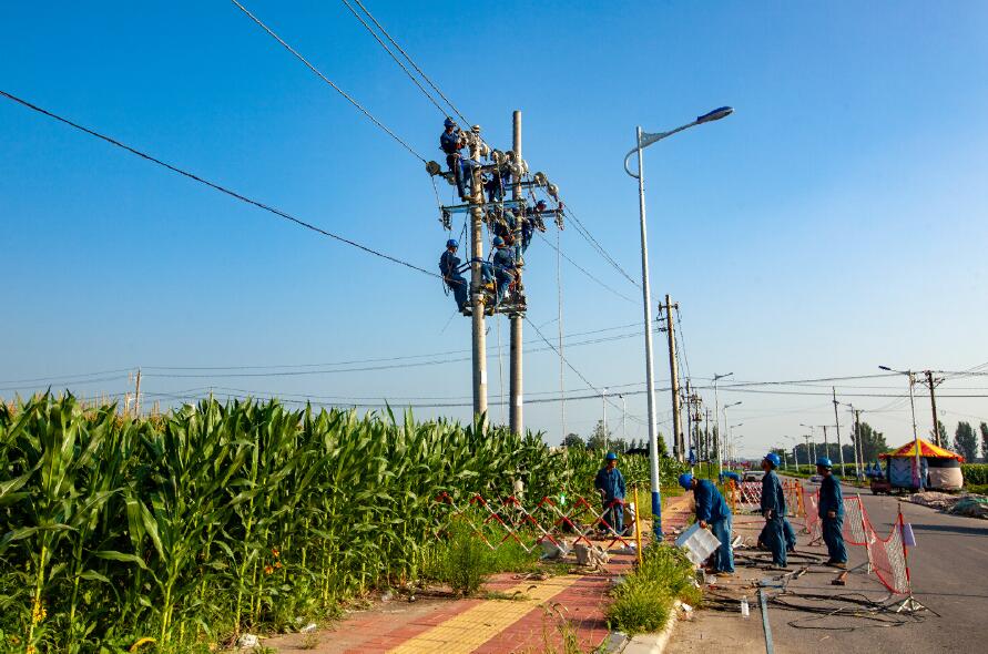 8月4日,在河南滑縣留固鎮(zhèn)南街村玉米田里,10千伏留賈線路升級改造現(xiàn)場,趙瑞杰、張連青等15名電力工人正在加緊作業(yè),爭取盡早完成工作任務(wù),為附近村民生產(chǎn)生活用電提供堅強(qiáng)電力能源保障,確保“清涼”度夏。