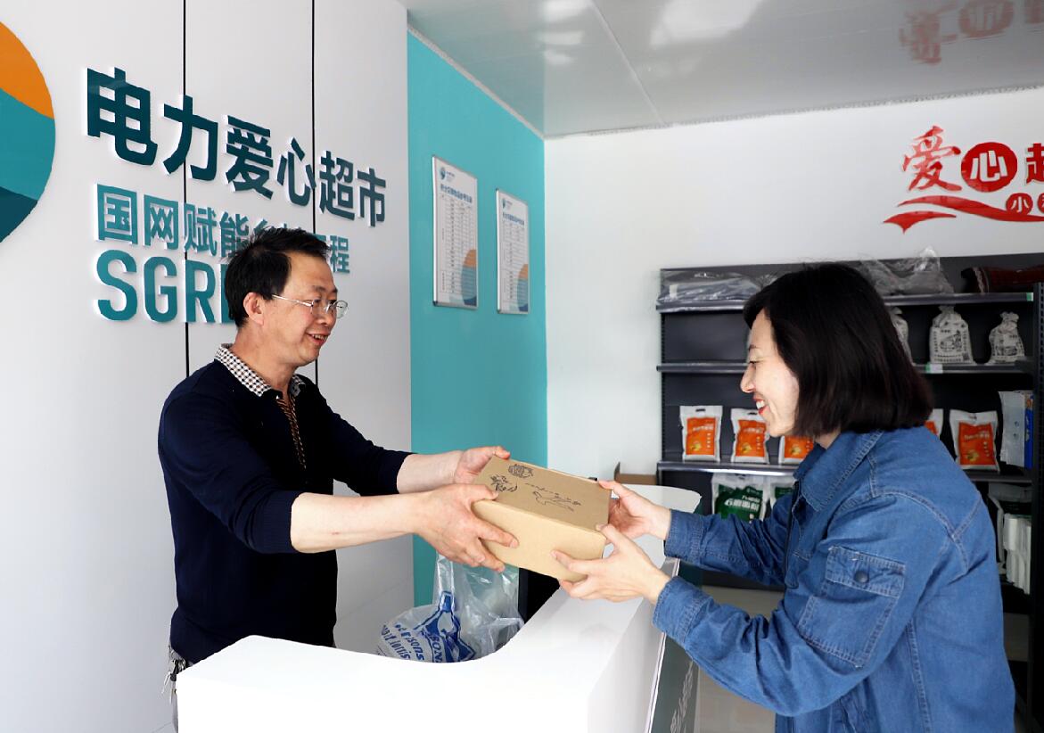 國(guó)網(wǎng)固原供電公司黨員在馮碑村“電力愛(ài)心超市”助農(nóng)消費(fèi)