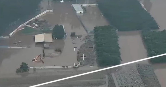 國網(wǎng)空間技術(shù)公司無人機傳回的涿州受災(zāi)畫面。(程海濤)