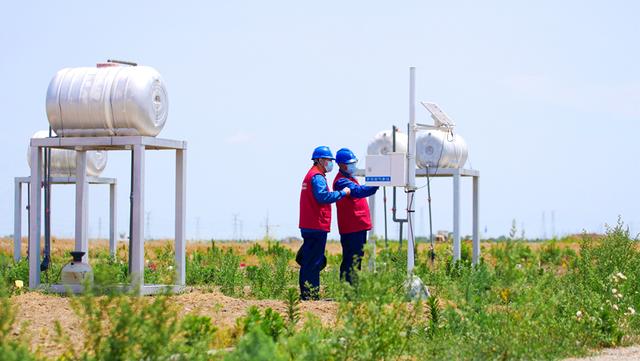 國(guó)網(wǎng)東營(yíng)供電公司工作人員在試驗(yàn)基地安裝微環(huán)境氣象監(jiān)測(cè)站和作物生長(zhǎng)環(huán)境監(jiān)測(cè)傳感器