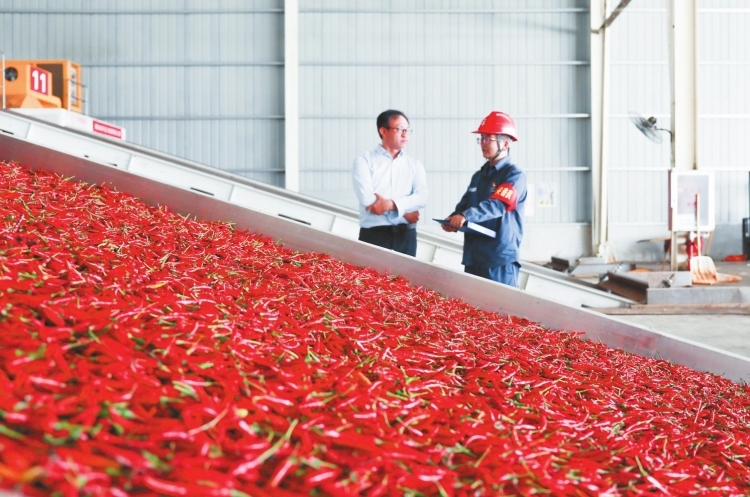10月14日,貴州電網(wǎng)公司遵義正安供電局瑞溪供電所黨員服務(wù)隊(duì)上門了解瑞裕辣椒加工廠的用電需求。 彭恒宇 攝