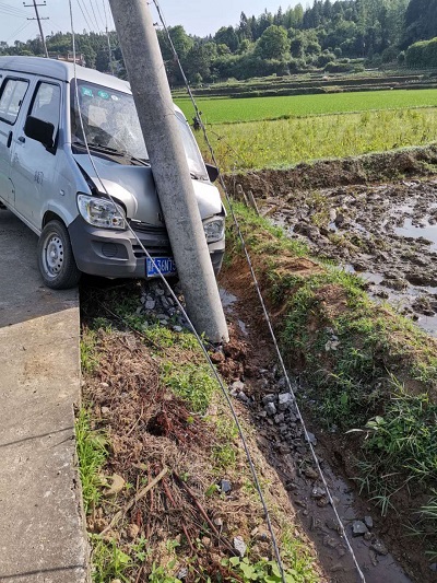 當(dāng)日早上7時10分,樂安縣供電公司接到事故報(bào)告:一輛面包車行駛時不慎將10千伏荷塘線47號桿撞斷,導(dǎo)致230余戶居民電力供應(yīng)中斷。