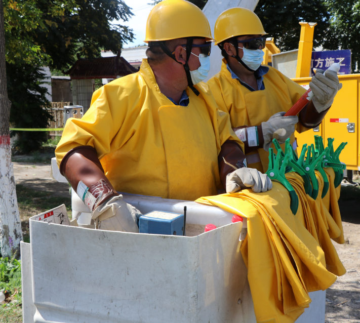 隨著絕緣斗臂緩緩下降,標志著本次作業(yè)順利結(jié)束。“疫情當前,發(fā)展的腳步不能停歇,政府招商引資的部分重點項目正處于建設(shè)的關(guān)鍵階段,我們要確保電力供應(yīng),全力助推各項產(chǎn)業(yè)穩(wěn)步推進。”居馬努爾將絕緣防護服里層像被“水洗”過的棉質(zhì)工作服換下,他表示雖然特種作業(yè)環(huán)境較為艱苦,但是每一次作業(yè)都有著重要意義,每順利完成一次作業(yè)自己的內(nèi)心又多一分自豪與安寧。