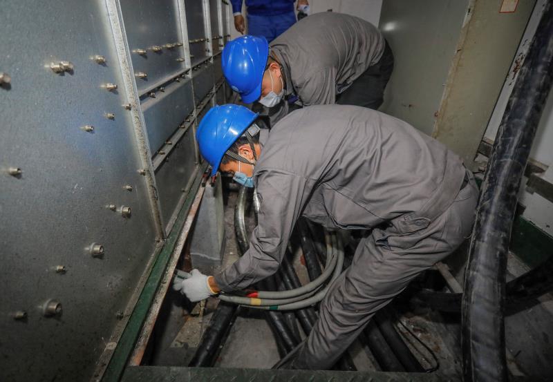 “門診明天6時開始工作,我們必須在凌晨4時前通電,保證門診部明天正常運(yùn)轉(zhuǎn)!” 工程負(fù)責(zé)人張軍現(xiàn)場號令。30日晚,20余名電力員工在李惠利醫(yī)院10千伏環(huán)網(wǎng)站周圍拉起安全施工防護(hù)欄和警界線,一場10千伏新電力用電設(shè)備投運(yùn)施工在星夜展開。老配電房電纜溝窄小,2名員工只能側(cè)著身把舊導(dǎo)線用力拉出來,再把新電纜放進(jìn)去。新配電箱安裝時,供電員工只能跪著安裝碗口粗的銅電纜,施工難度非常大。而供電員工心理明白,這是一場與時間賽跑、為生命加速的工程。