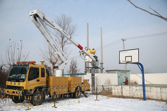 中國電力網(wǎng)訊 1月5日,在濰坊壽光市紀臺鎮(zhèn)堠子坡村,國網(wǎng)壽光市供電公司帶電作業(yè)人員在寒潮來臨之前,對該村存在安全隱患一臺250千伏安變壓器更換跌落開關(guān),及時消除設(shè)備運行隱患,保障迎峰度冬期間居民用電無憂。