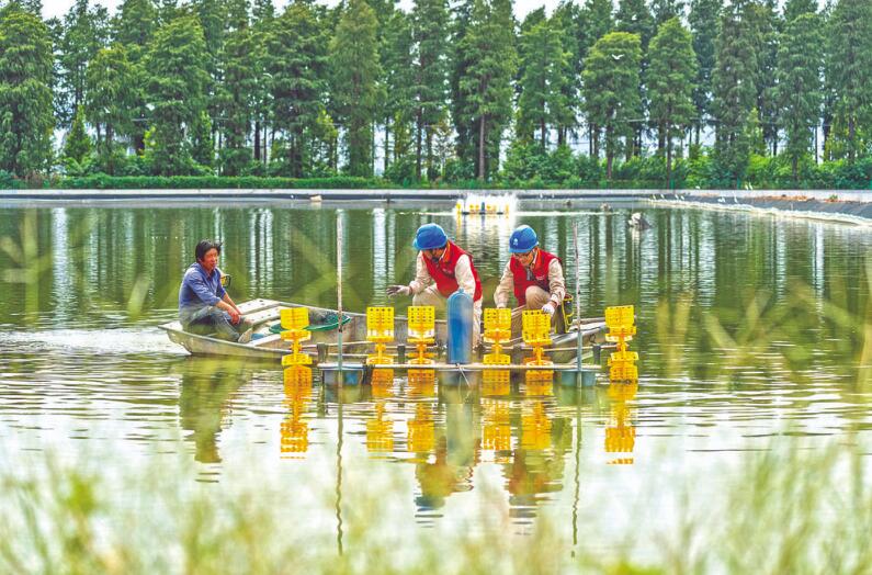 供電員工到高淳國(guó)家現(xiàn)代農(nóng)業(yè)產(chǎn)業(yè)園檢查增氧泵運(yùn)行情況。 杜懿 攝