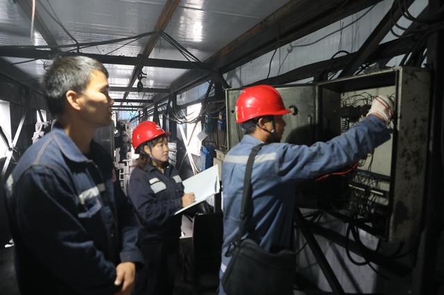 南方電網(wǎng)興仁供電局電力保障通訊組人員對順發(fā)煤礦配電設(shè)備進行電壓負荷監(jiān)測。