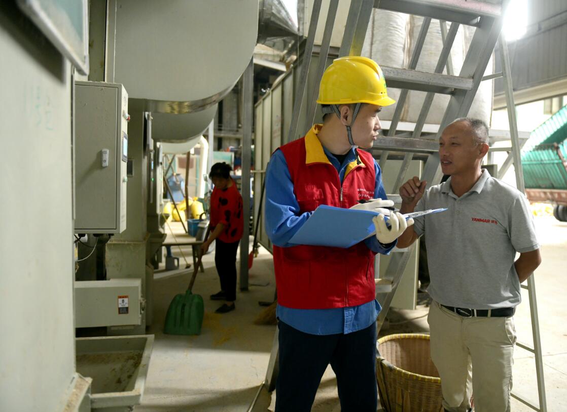 糧食種植和生產(chǎn)是“國之大者”,確保糧食和重要農戶的可靠用電,一直以來都是宏宇公司積極服務鄉(xiāng)村振興的重點工作??紤]到秋收將至,為確保大批稻谷加工高峰期期間用電安全,宏宇公司成立秋收保電小組,提前深入田間地頭對涉農供電線路和設備進行排查,上門走訪轄區(qū)內農機站、糧庫等重要用戶,及時消除可能存在的安全隱患,助力農戶秋收顆粒歸倉。