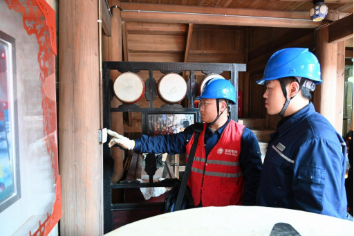 國(guó)網(wǎng)邵武市供電公司員工到和平古鎮(zhèn)開(kāi)展供電設(shè)備巡視。(朱麗)