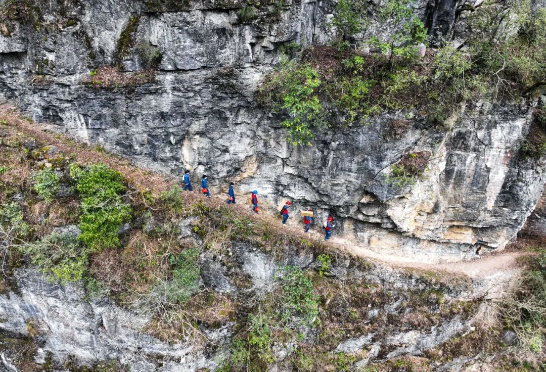 據(jù)了解,山洞組是一個(gè)只有8戶人家的自然寨,四面大山環(huán)繞,進(jìn)寨的通道是一條懸崖上的小路,因?yàn)闂l件特殊,祖祖輩輩的村民過著與世隔絕的生活,人們將這個(gè)自然寨稱之為“天坑村”。近5年時(shí)間,“天坑村”黨員服務(wù)隊(duì)累計(jì)深入天坑村30多次,320000個(gè)腳步走出一條通往老百姓心里的路。
