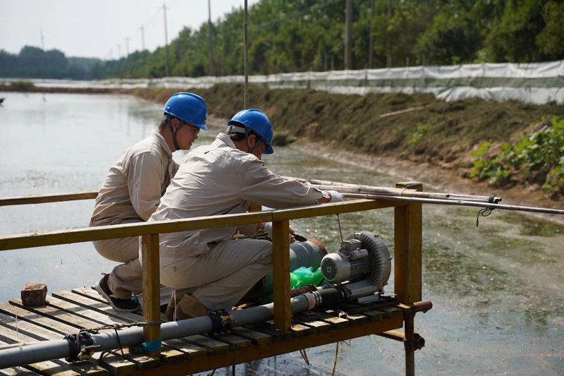 本網(wǎng)訊 連日來,國網(wǎng)江蘇電力睢寧縣供電公司工作人員來到魏集鎮(zhèn),對水產(chǎn)養(yǎng)殖戶用電設備開展隱患排查,重點對充氧設備、漏電保護裝置進行安全檢查,同時向客戶了解用電需求,講解安全用電注意事項,為水產(chǎn)養(yǎng)殖戶致富增收提供可靠電力保障。