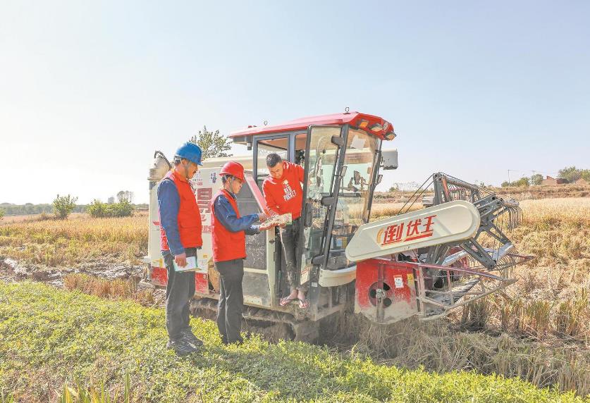 2024年秋收期間,在肥東縣楊店鄉(xiāng),黨員服務(wù)隊隊員為客戶講解安全用電知識。 陳海東 攝