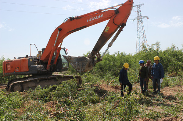 荒地所抓住工程項(xiàng)目施工中的重點(diǎn)難點(diǎn)工作開(kāi)展克難攻堅(jiān),定出時(shí)間段、工作完成目標(biāo)清單、施工方案和考核辦法,做到工程項(xiàng)目能快速推進(jìn)按時(shí)完成。在新建六團(tuán)110千伏雙城變電站至國(guó)網(wǎng)220千伏變電站110千伏輸電線路施工中,因所建基塔在溫宿縣克孜勒鎮(zhèn)境內(nèi)需要簽訂征地賠償19戶,所長(zhǎng)李建亞和公司項(xiàng)目部到當(dāng)?shù)囟啻握勁?,積極協(xié)調(diào),在“關(guān)于征收阿拉爾市“三區(qū)三州”農(nóng)網(wǎng)升級(jí)110kv變110kv線路改造項(xiàng)目用地土地及地上附著物的通告”的時(shí)間段內(nèi)對(duì)農(nóng)戶加緊測(cè)量劃定征地面積、果樹(shù)數(shù)量和賠償金額,開(kāi)展簽訂一戶、開(kāi)挖一戶、澆筑一戶、立塔一戶。