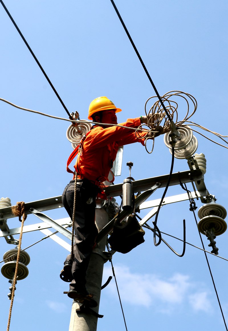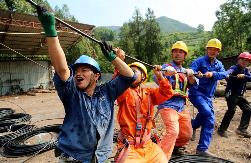 四川通江供電公司高溫天氣電力員工作業(yè)忙