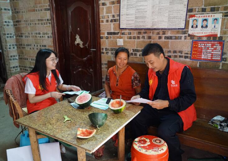 南方電網廣西富川縣公司青年志愿者在村民家宣傳節(jié)能等知識