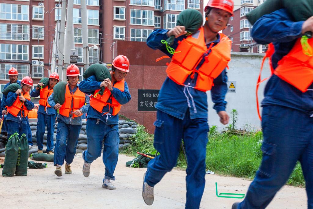 本次演練場景設置為滑縣遭受短時強降雨天氣,并伴有6到7級大風,降水量100-150mm,滑縣供電公司啟動防汛三級預警。110千伏變文明變電站電纜溝積水嚴重,站外雨水倒灌危機站內設備安全運行。該公司防汛應急指揮中心立即下令,組織人員趕赴變電站現(xiàn)場,加固防汛擋板,擺放水袋水泵進行電纜溝抽水,增加防汛沙袋快速封堵大門等工作有條不紊開展。在經過快速的“防外、疏內”后,變電站轉危為安,水位下降到正常水平。演練圓滿結束。