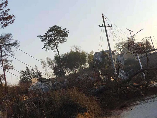 國網(wǎng)樂安縣供電公司:樹木倒塌壓斷電桿 供電員工迅速搶修復(fù)電