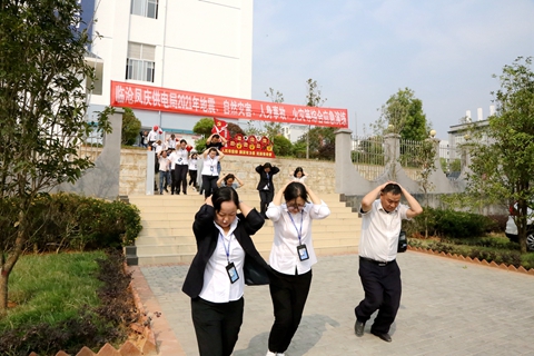 上午10時許,鳳慶供電局演練總指揮在消防控制室發(fā)出演練信號,演練模擬鳳慶主城區(qū)發(fā)生6.5級破壞性地震,鳳慶供電局辦公樓開始搖晃,樓內(nèi)所有人員立即采取避震措施。避震一分鐘后,從一樓到四樓,各樓層緊急疏散負責人冷靜組織本樓層人員按最近、最佳疏散路線撤離至安全聚集地,快速清點人數(shù),并向總指揮匯報人員撤離情況。
