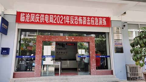 在反恐怖襲擊演練中,本次演練以該局鳳慶營業(yè)廳內突然出現(xiàn)2名不明身份窮兇極惡的持刀恐怖分子,挾持1名安保人員為演練假定場景。演練營業(yè)廳值班人員信息報告、應急響應啟動、人身救援、通訊聯(lián)絡等現(xiàn)場應急處置過程。演練現(xiàn)場, 2名持刀窮兇極惡的恐怖分子以辦事為由,在保安人員正當詢問及登記之際,恐怖分子手持管制刀具強行推開營業(yè)廳門闖入廳內,企圖用砍刀襲擊現(xiàn)場保安工作人員并直奔營業(yè)廳平臺破壞電力營業(yè)收費管理正常秩序。營業(yè)廳工作人員立即向應急辦值班室匯報,應急辦主任聽取應急辦值班室匯報后,立即做出啟動生產辦公場所反恐怖襲擊事件(四級)應急響應的決定,安排有關保安和工作人員對現(xiàn)場進行處置,保安人員并及時持盾牌、鋼叉等警用設備與暴徒對峙,采取應急處置措施,終將恐怖分子制服。