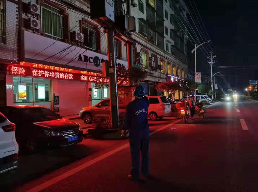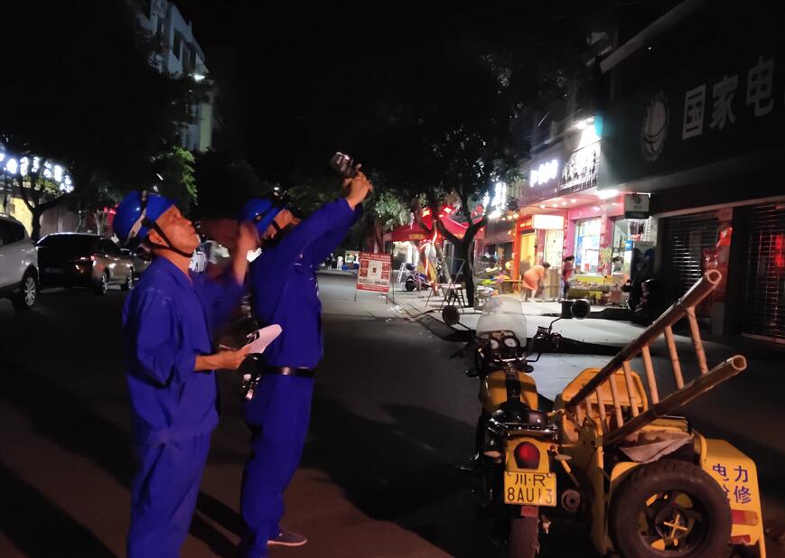 7月31日,國網(wǎng)南充市高坪供電公司工作人員對10千伏東岸線梧桐閣臺變及JP柜故障緊急搶修。(茍中華 攝)