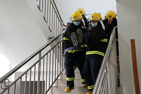 “這里是臨滄鳳慶供電局辦公大樓,大樓二樓綜合服務(wù)中心(涉電辦)起火了,發(fā)生火災(zāi)事故,請(qǐng)快點(diǎn)來(lái)救火!”1月12日13時(shí)10分,臨滄鳳慶供電局設(shè)置辦公大樓二樓綜合服務(wù)中心(涉電辦)為火災(zāi)事故現(xiàn)場(chǎng),消防控制室值班人員立即按響火災(zāi)報(bào)警器。隨即,全面啟動(dòng)消防監(jiān)控操作系統(tǒng)實(shí)戰(zhàn)應(yīng)急演練預(yù)案,有序疏導(dǎo)員工采取避災(zāi)措施,撤離火災(zāi)現(xiàn)場(chǎng),各樓層人員依次順序疏散到場(chǎng)院應(yīng)急避災(zāi)安全場(chǎng)所,全體員工們到達(dá)安全場(chǎng)地時(shí),立即集合,清點(diǎn)人數(shù),發(fā)現(xiàn)一名辦公人員被困受傷于辦公場(chǎng)所,并組織義務(wù)消防人員進(jìn)行滅火及實(shí)施傷員全程(心肺復(fù)蘇急救法)救治工作。按照應(yīng)急演練預(yù)案要求,應(yīng)急指揮中心啟動(dòng)消防應(yīng)急響應(yīng),消防應(yīng)急指揮組、滅火行動(dòng)組、疏散引導(dǎo)組、現(xiàn)場(chǎng)救援組、后勤保障組、新聞報(bào)道組等迅速于辦公樓場(chǎng)院集合,安裝在樓內(nèi)的消防報(bào)警器同時(shí)發(fā)出尖銳的火災(zāi)報(bào)警聲。這一幕,是該局精心組織的2022年火災(zāi)事故、滅火、傷員救治及疏散應(yīng)急演練。同時(shí)還在傷員急救現(xiàn)場(chǎng),上級(jí)消防安全應(yīng)急演練檢查督導(dǎo)組領(lǐng)導(dǎo)親自上陣作傷員救治示范,確保每一步動(dòng)作都標(biāo)準(zhǔn)到位,并通過(guò)應(yīng)急演練有效提高參演人員消防安全和火災(zāi)自救意識(shí),提升應(yīng)對(duì)突發(fā)火災(zāi)時(shí)的處置能力。