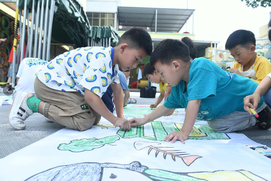 在活動(dòng)中,志愿者們還鼓勵(lì)孩子爭(zhēng)做傳播環(huán)保節(jié)能的小小宣傳員,通過(guò)親手制作的宣傳畫(huà),把今天學(xué)到的知識(shí)分享給爸爸媽媽以及其他小伙伴。不遠(yuǎn)處,小宣傳員們手拿蠟筆,在長(zhǎng)畫(huà)布上描繪“節(jié)能低碳”,有節(jié)約用電、垃圾分類(lèi)、節(jié)約用水等不同類(lèi)別,孩子們紛紛畫(huà)出獨(dú)屬于自己的宣傳畫(huà)。