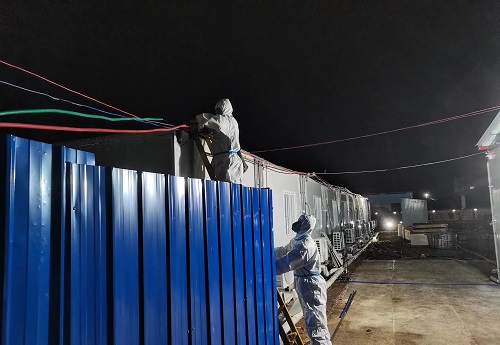 疫情就是命令,防控就是責任。國網(wǎng)東安縣供電公司黨委積極部署制定方案,以楊成為首的4名工作人員進入防控區(qū)域進行作業(yè),著全套防護服、攜帶登桿、搶修各類工具及材料進入管控區(qū)域。隨后,工作人員開始對院內(nèi)的變壓器以及用電線路等設(shè)備進行全面檢查,為盡快恢復(fù)隔離點供電,從排查電氣、監(jiān)測漏電保護器、更換導(dǎo)線,大家爭分奪秒。“夜間作業(yè)視線不好,要特別注意安全,要戴好口罩,注意自身的防護!”楊成叮囑每一位搶修人員,在應(yīng)急搶修燈的照明下,工作人員不敢有絲毫的麻痹大意,嚴密監(jiān)護作業(yè)……一道道工序有條不紊地進行著,雖然天氣變冷,但是密不透風的防護服和口罩很快便被汗水打濕,他們在夜幕中來回穿梭,與時間賽跑,與疫情競速,用時6小時,奮戰(zhàn)到晚上23點圓滿完成緊急供電任務(wù)。